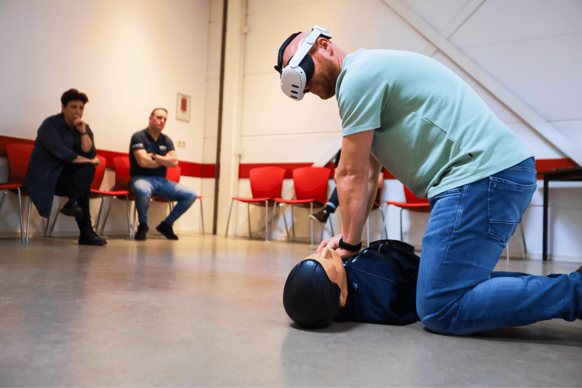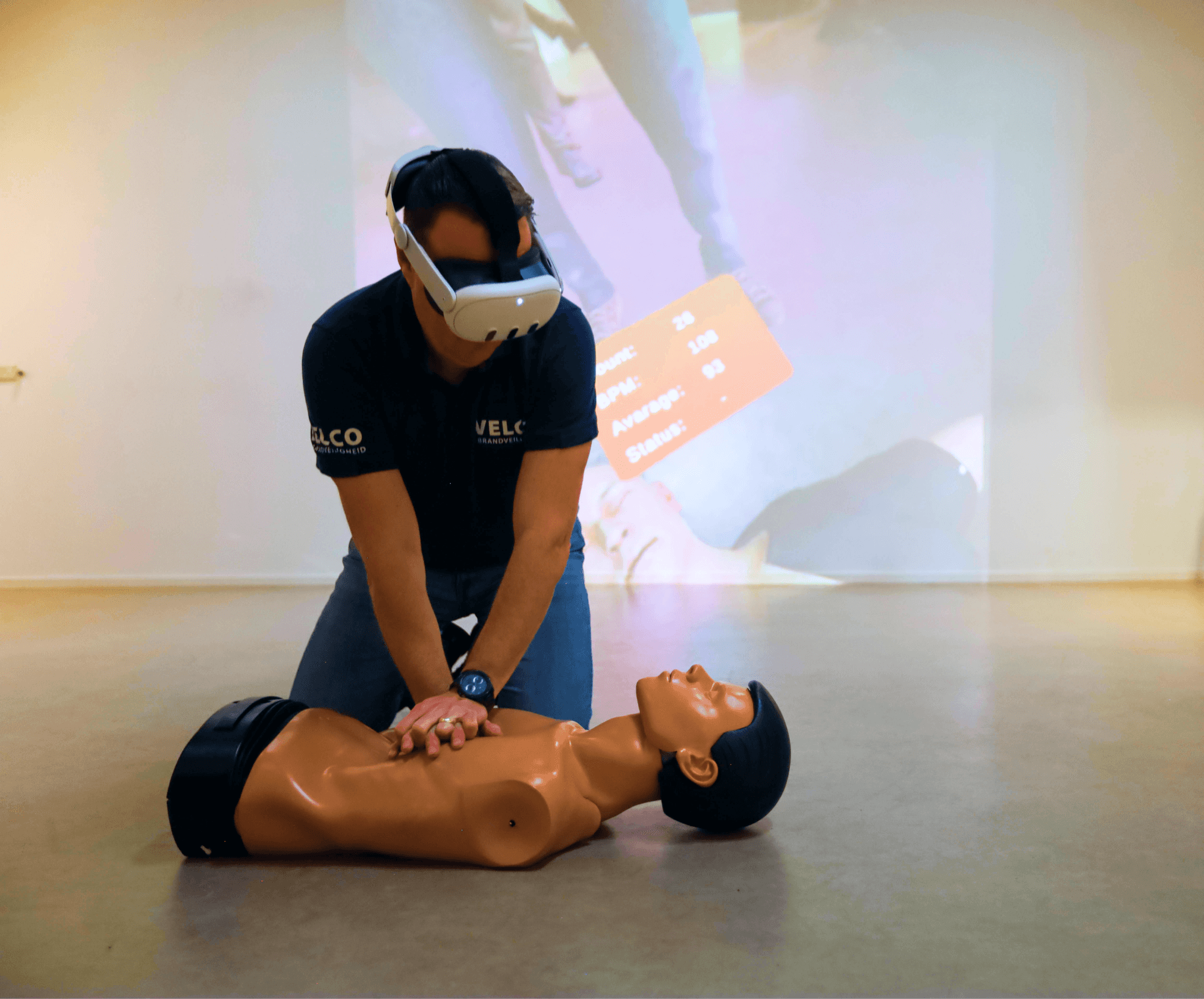 Introductie van onze nieuwe AR BHV-training, ontwikkeld in samenwerking met Velco! 🚨 Deze innovatieve Augmented Reality-training is ontworpen om BHV-reanimatiecursussen meeslepender en realistischer te maken, zodat deelnemers de druk van kritieke momenten ervaren wanneer iemand onverwachts in elkaar zakt. Deze vernieuwde benadering zorgt ervoor dat elke deelnemer voorbereid is op hoge druk situaties in een BHV-omgeving.