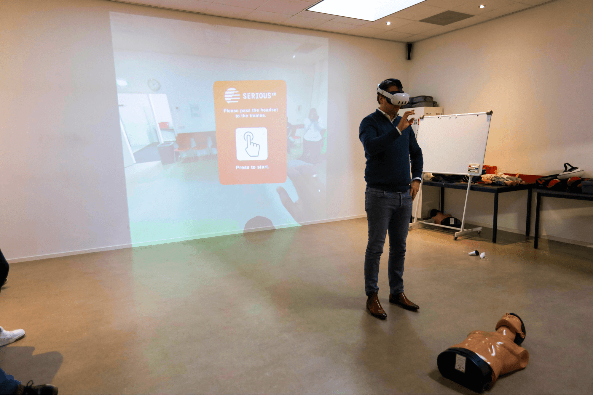 Vandaag hebben we onze nieuwe reanimatie AR-training gedemonstreerd aan alle trainers van Velco Brandveiligheid! Deze sessie bood een waardevolle kans voor feedback vanuit hun expertise en gaf de trainers de mogelijkheid om vertrouwd te raken met de training, zodat ze het maximale leereffect kunnen bereiken met hun cursisten.